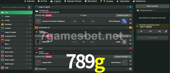 A aposta 789g oferece aos jogadores a experiência mais conveniente de apostas em eSports!